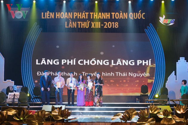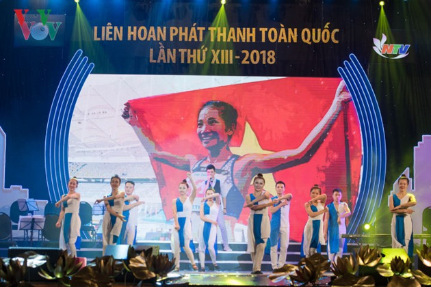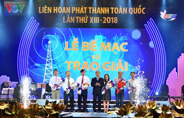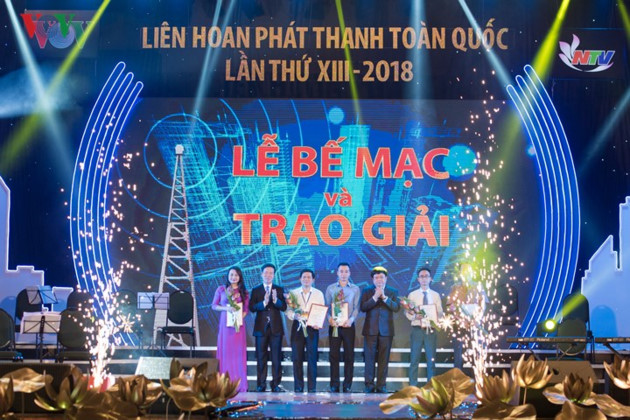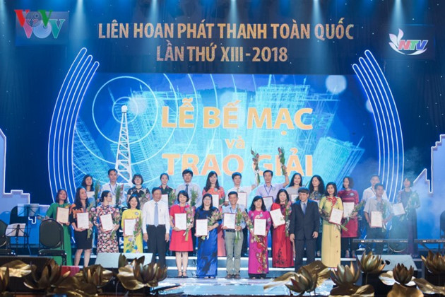 | VOVTV、VTVなど国内の多くのラジオ・テレビ局で生中継された第13回全国ラジオ放送フェスティバルの閉幕式と授賞式。 |