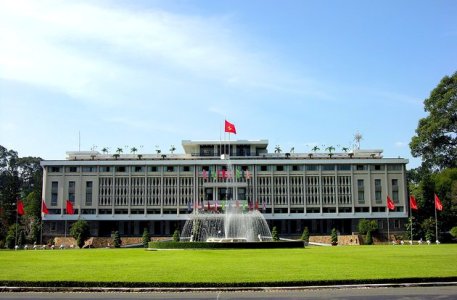 現在の建物は1966年に、南部ベトナムの建築家のゴ・ベト・トゥーにより4階建ての現代建築として再建され、ベトナム戦争終結までベトナム共和国の大統領府及び官邸とされ使用されました。1975年4月30日のベトナム戦争終結時に、サイゴン市内に突入した北ベトナム軍の戦車が当時は大統領府であったこの建物のフェンスを破り突入、サイゴンは陥落しました。これを機に歴史的なベトナム戦争は終結する ことになりました。