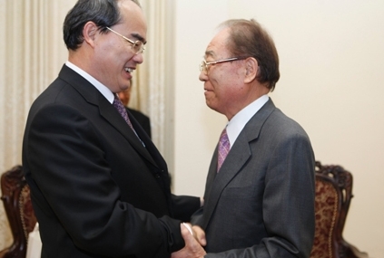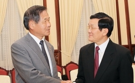 9日午後、ハノイで、ベトナムのチュオン・タン・サン国家主席はベトナムを訪問中の大阪商工会議所 の佐藤茂雄(さとう しげたか)会頭と会見を行いました。