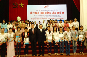 先頃、ベトナム教育養成省と計画投資省及び日本教育付与基金は2012―2013学年度、優秀な成績を納めた大学生100人に奨学金を手渡しました。