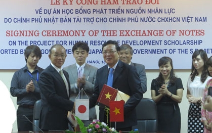 18日午前、ハノイで教育訓練省のファム・ブ・ルアン大臣と在ベトナム日本大使館の谷崎・ヤスアキ大使は日本政府の「ベトナムの人材開発向けの奨学金支給プロジェクト」に関する公文書に調印しました。