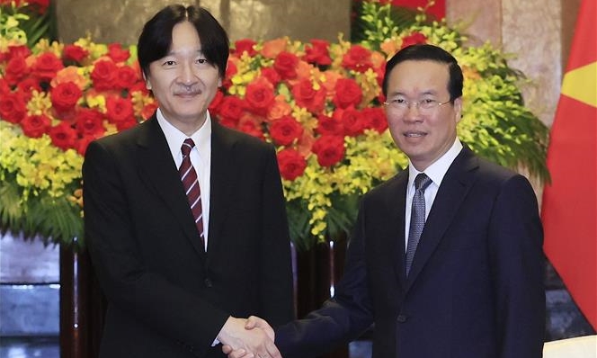 (VOVWORLD) - 22日、ハノイで、ベトナムを公式訪問中の秋篠宮ご夫妻は、ボー・バン・トゥオン国家主席を表敬訪問されました。