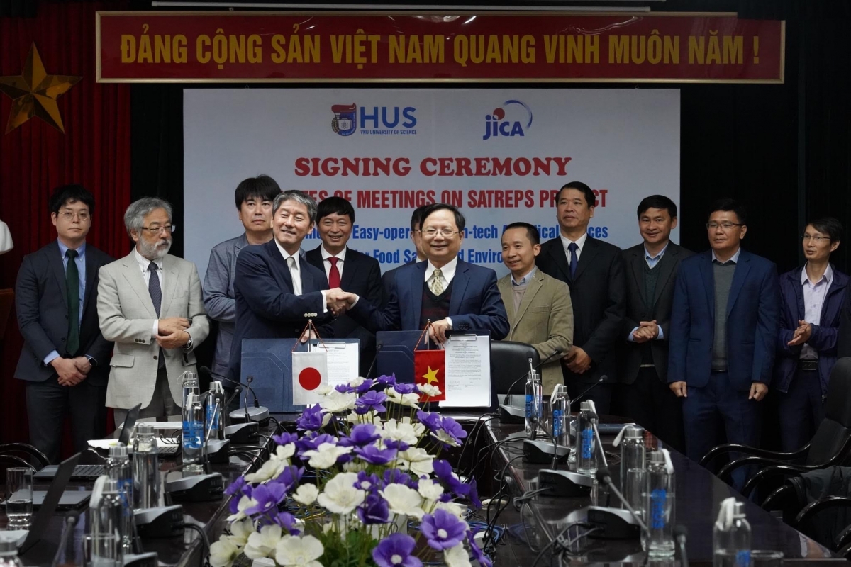 (VOVWORLD) -2日午前、ハノイ国家大学ハノイ校自然科学大学で、同大学とJICA=国際協力機構はSATREPS=食と環境の安全・安心を実現するハイテク簡易オペレーション分析デバイスの開発と人材育成プロジェクトの実施に関する覚書の調印式が行われました。