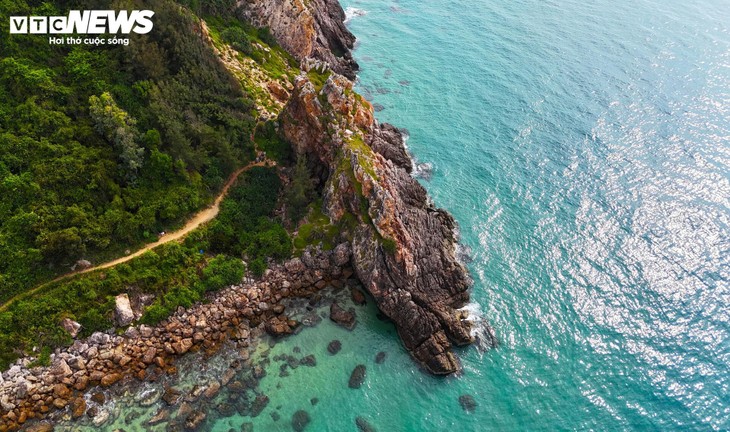 (VOVWORLD) - ヴィロン岬は、ベトナム中部ビンディン省に残る手つかずの自然景勝地のひとつです。上空から見ると、まるで大海原へと身を乗り出す巨大な龍のような姿をしています。この写真記事で、ヴィロン岬の美しさをご覧ください。