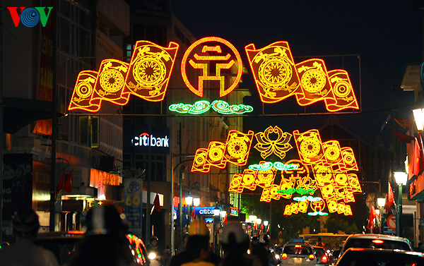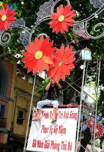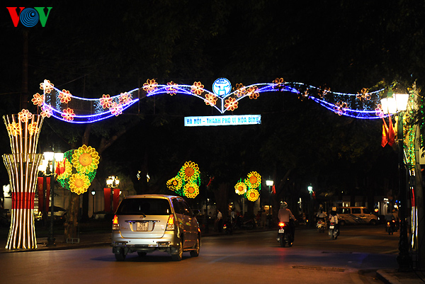 リスナーの皆さん、1954年10月10日首都ハノイがフランス植民地主義者から解放され、今年で60年になりました。これを祝い、この数日間、ハノイ市内は美しく飾られています。その様子を以下の写真でご紹介します。