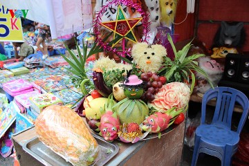 ザボンやドラゴンフルーツ、スイカ等で出来た飾り物