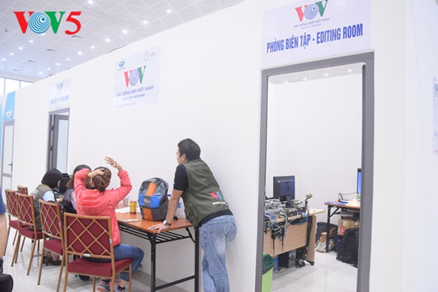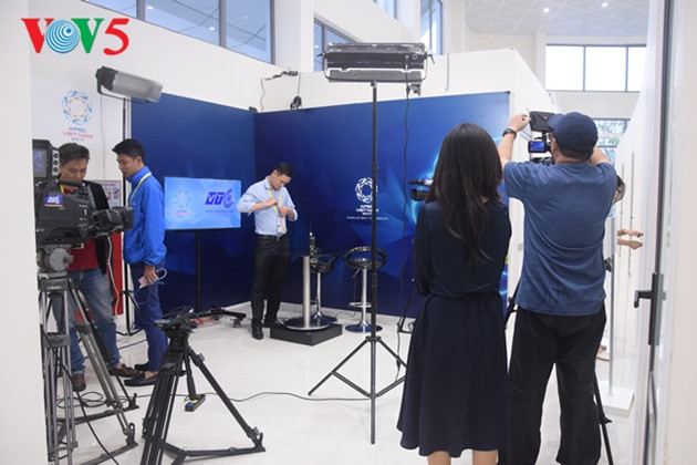 | APEC2017のイベントが様々な場所で開催されるが、この部屋ではイベントの生中継が行われ、ジャーナリストの便宜を図る。 |