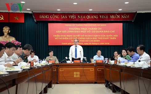 9日、ホーチミン市で、同市党委員会は各報道機関の指導者らと会合を行い、ホーチミン市を発展させるための特別な政策・体制を定める国会の54号決議の展開について討議しました。