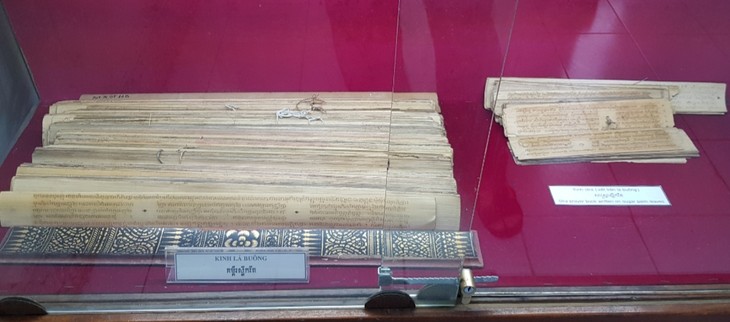 この前、Kh’Leang寺院にはバイラーンに書かれた仏経を保存しましたが、現在、これらの仏経がソクチャン省のクメール族の民族文化展示館で保存されています。同展示館のガイド、タック・テイ・ロアンさんは次のように語りました。
