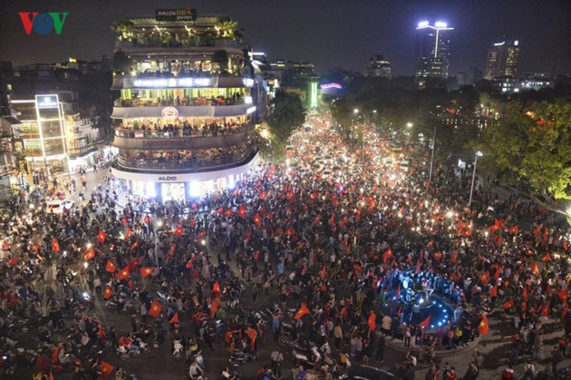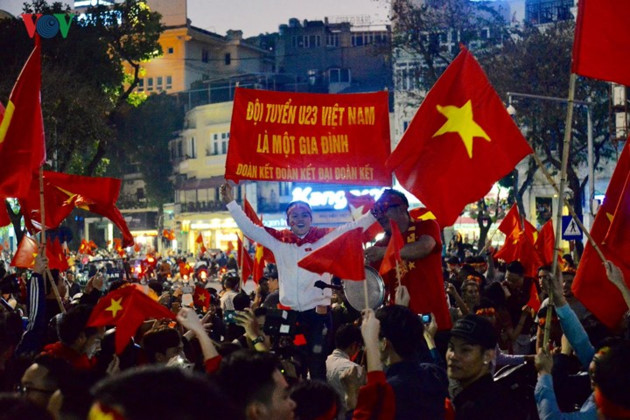 (VOVWORLD) - 既にお伝えしましたように、中国で開催されている23歳以下(U23)のサッカーアジア選手権大会で、ベトナムとカタールとの準決勝戦がベトナム時間の23日午後に行われましたが、ベトナムが勝ち、決勝進出を決めました。その後、首都ハノイをはじめ、全国各地が、勝利に熱狂する雰囲気に包まれています。