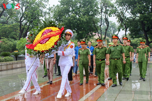 | 7月18日、VOVの青年たちと警察部隊の代表がハノイの英雄記念塔を訪れ、花輪を捧げた。 |