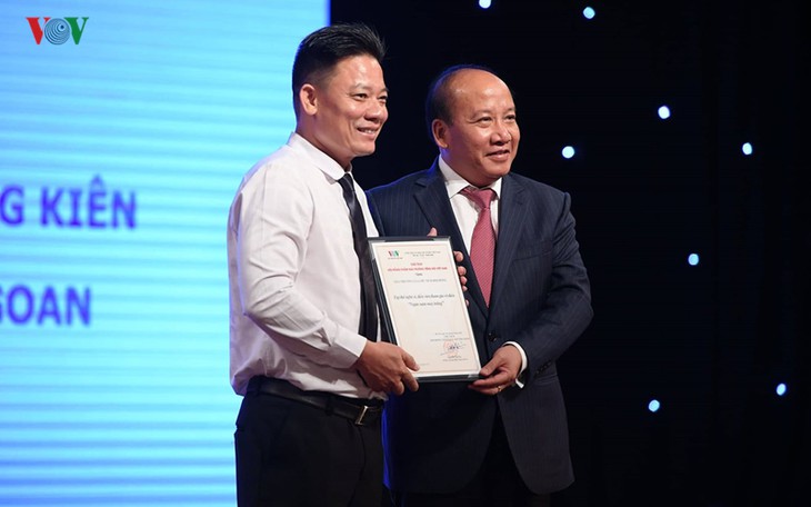 (VOVWORLD) - 6日、VOV=ベトナムの声放送局の本部で、「VOV賞2019」授賞式が行われました。党中央宣伝教育委員会のレ・マイン・フン副委員長や、ベトナムジャーナリスト協会のホ・クアン・ロイ副会長らが参列しました。VOV賞は、VOVの報道活動や、発展事業に貢献するVOVの幹部、職員を顕彰するものです。