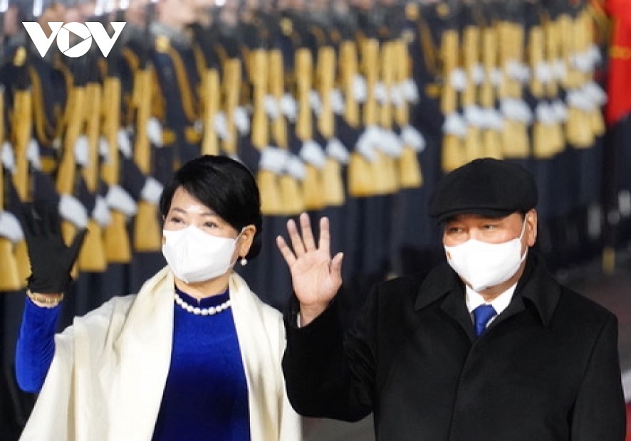 (VOVWORLD) - 現地時間の11月29日午後、グエン・スアン・フック国家主席夫妻とベトナム代表団は首都モスクワのヴヌーコヴォ国際空港に到着し、プーチン大統領の招きに応じたロシア公式訪問を開始しました。空港で歓迎式が盛大に行われました。