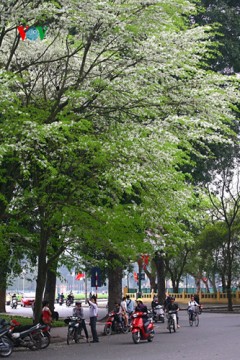 槐の花シーズンを迎えたハノイ市内