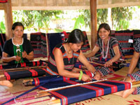 普通、コトゥー族の女性たちは、早朝から夜遅くまで農作業をしていますので、現地行政府がこれらの人々に伝統織物グループへの参加を呼びかけるのはかなり大変でした。当初、ゾラ村の伝統織物グループは現地と周辺村の女性20人からなっていましたが、現在、参加者数は42人にのぼっています。女性たちは毎日、農作業を終えた夜に集まって、財布、バック、帽子、スカートなどを織ります。現在、同グループはおよそ40種類の織物製品を作るようになりました。これらの製品は現地を訪れる観光客に販売したり、ホーチミン市やハノイ市、カントー市などの大都市で紹介されています。
