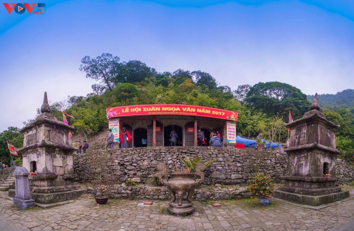 បុព្វហេតុបួសរបស់ ព្រះអង្គម្ចាស់ Tran Nhan Tong បានរីកចម្រើនបំផុតនៅលើភ្នំ Yen Tu ខេត្ត Quang Ninh ហើយស្រេចបានយកឈ្មោះ Huong Van Dai dau da ឬ Giac  Hoang Dieu ngu
