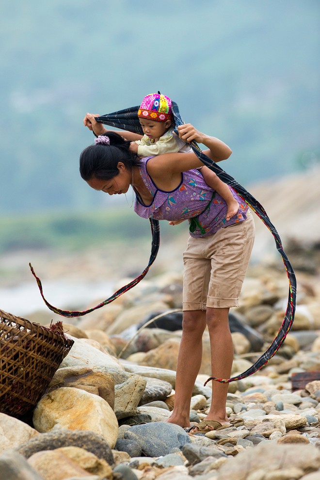 | ម្តាយស្ពាយកូនទៅធ្វើការ។ |