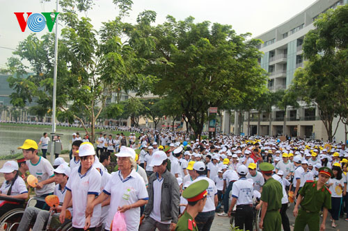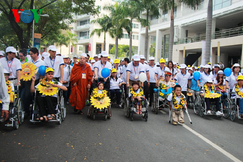 រូបភាពប្រធានរដ្ឋ Truong Tan Sang រួមជាមួយមនុស្សរាប់ពាន់នាក់រួមដៃគ្នារុញរទះ ជនពិការក្នុងទិវានេះគឺជាសារល្អមួយសេចក្តីស្រឡាញ់ការចែករំលែកដ៏ជ្រាលជ្រៅ ដែលវៀតណាមចង់ផ្ញើជូនដល់សហគមន៍អន្តរជាតិអំពីប្រពៃណីសីលធម៌ដ៏ខ្ពង់ខ្ពស់