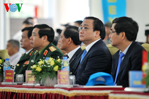 | Phó Thủ tướng Hoàng Trung Hải đến dự khai mạc Diễn tập thực binh ứng phó thiên tai ARDEX 13. ឧបនាយករដ្ឋមន្ត្រី Hoang Trung Hai បានចូលរួមពិធីបើក ការធ្វើសមយុទ្ធពិតទប់ទល់នឹងគ្រោះធម្មជាតិ ARDEX 13។ |