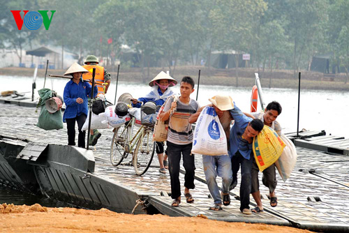 | កំលាំងវិស្វកម្មកំពុងតភ្ជាប់ស្ពានពេញមួយដើម្បីជម្លៀសប្រជាជនជៀសផុតពីតំបន់ទឹក ជំនន់។ |
