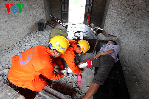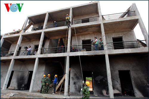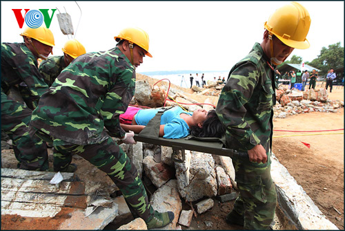 | កំលាំងជួយសង្គ្រោះដំណើរការធ្វើសមយុទ្ធ “ការស្វែងរកជនរងគ្រោះក្នុងសំណង បាក់រលំ។ |