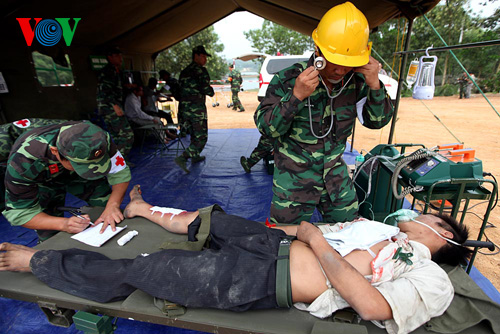 បាន សហការធ្វើសមយុទ្ធតាមសេណារីអ៊ូនិងផ្តល់ជំនួយសុខាភិបាលនៅទីនេះ។