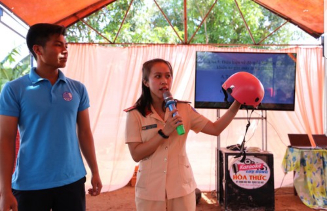 ប៉ូលីសផ្សព្វផ្សាយពាក់មួកសុវត្ថិភាពសំរាប់ប្រជាជន (រូបថត៖ Ngoc Anh)