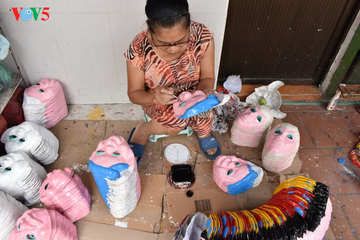 គ្រួសារលោកប្រកបរបរនេះពេញមួយឆ្នាំ ប៉ុន្តែនារដូវក្ដៅ គេធ្វើបានច្រើនជាង ដោយសារគេត្រូវហាលរបាំងមុខទាំងនោះឲ្យស្ងួត។ ដើម្បីធ្វើបានរបាំងមុខមួយ ត្រូវចំណាយពេលវេលា១ម៉ោង។