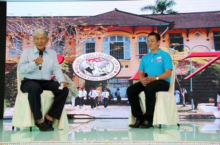 លោក Le Van Quoi (ខាងឆ្វេង) ចូលរួមពិធីអបអរសាទរខួបទិវាបង្កើតវិទ្យាល័យ Chau Van Liem។