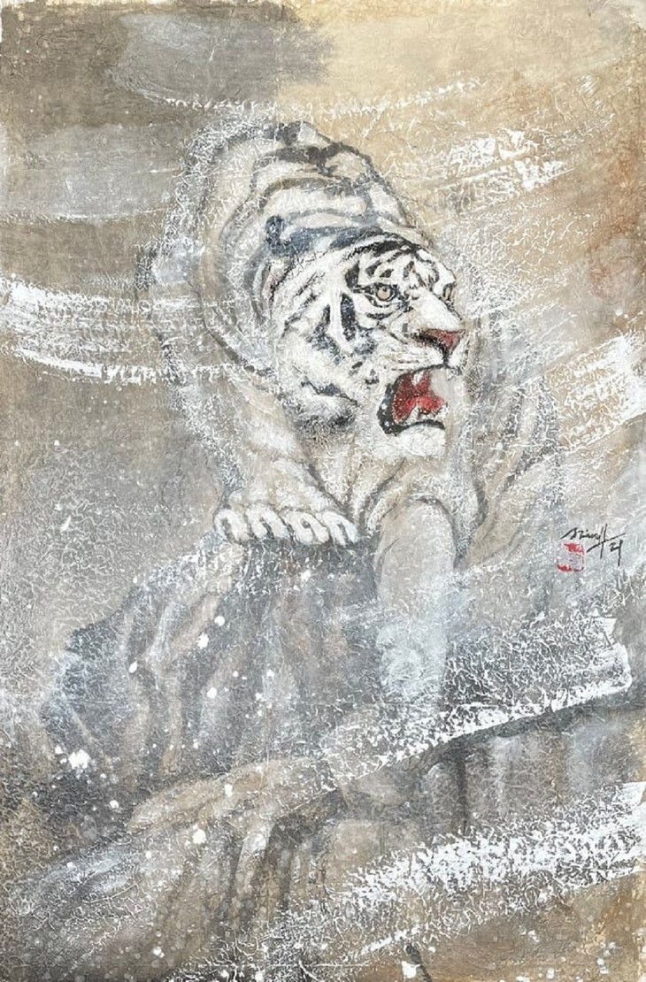 តាមរយៈគំនូរខ្លា វិចិត្រករ Nguyen Doan Ninh មានគោលបំណងអំពីឆ្នាំថ្មី ឆ្នាំខាល ចត្វាស័ក ២០២២ ដែលពោរពេញទៅដោយភាពខ្លៀវក្លា និងមនោសញ្ចេតនា។