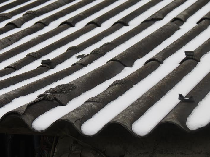 ព្រិលធ្លាក់ដណ្ដប់ពេញដំបូងផ្ទះនិងជម្រាលភ្នំ។