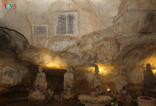 | នាបច្ចុប្បន្ននៅក្នុងគុហា Long Tien មានកំណាព្យចំនួន១៥បទដែលត្រូវ បានឆ្លាក់នៅលើច្រាំងថ្ម។ |