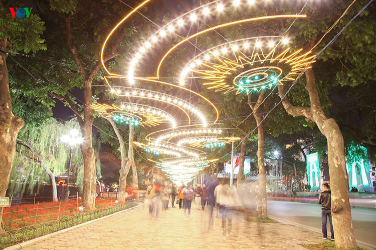 | ពេលដើរថ្មើជើងនៅជុំវិញបឹង Guom យើងអាចទស្សនាភ្លើង LED ចម្រុះពណ៍។ |