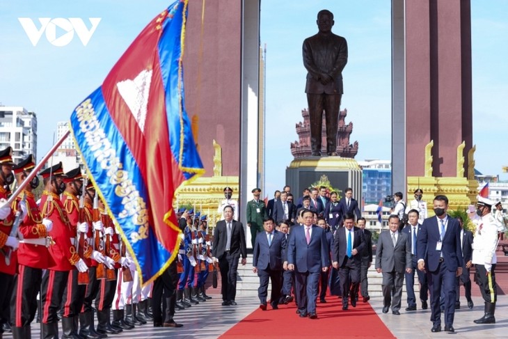 បន្ទាប់ពីមកដល់ប្រទេសកម្ពុជា លោកនាយករដ្ឋមន្ត្រី Pham Minh Chinh បានទៅដាក់កម្រងផ្កានៅវិមានឯករាជ្យ ស្តូបព្រះបរមរូបព្រះបរមរតនកោដ្ឋ ព្រះមហាវិរក្សត្រ ព្រះបាទ នរោត្តម សីហនុ និងវិមានមិត្តភាពវៀតណាម-កម្ពុជា នៅរាជធានីភ្នំពេញ។