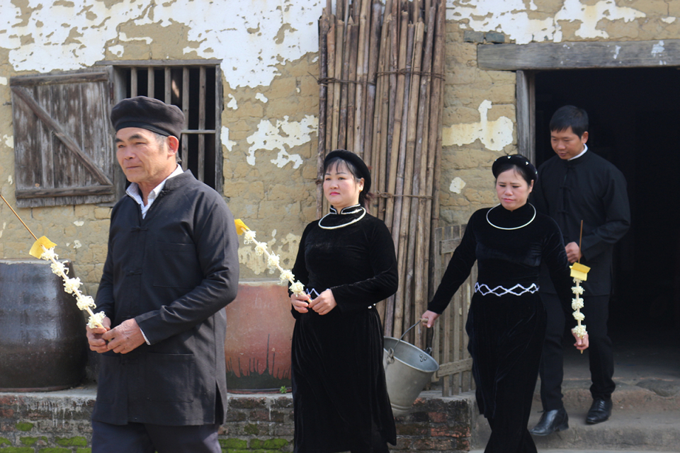 នៅរសៀលថ្ងៃទី៣០តេត គ្រួសារជនជាតិ Tay សឹងតែទាំងអស់នៅភូមិ Chang Na ឃុំ Tinh Huc ស្រុក Binh Lieu សុទ្ធតែប្រមូលផ្ដុំគ្នានៅជុំវិញស្ពកបាយ ចុងឆ្នាំ។ បន្ទាប់ពីពេលបាយ លោក Le Thiem Phu ជាមួយចៅៗអង្គុយនៅ ជុំវិញចង្ក្រានភ្លើង ហើយដំណាលរឿងបណ្ដើរ ត្រៀមរៀបចំឲ្យពិធីយកទឹកថ្ងៃ ស្អែកបណ្ដើរ។ ពិធីយកទឹកនៅថ្ងៃទី១បុណ្យតេត គឺជាពិធីសំខាន់បំផុតរបស់ជន ជាតិ Tay។ ពួកគេតែងតែជ្រើសរើសទីកន្លែងដូចជាពីប្រភពទឹកជ្រោះដោយសារនៅទី នោះមានទឹកថ្លា។ ក្នុងពេលជា មួយគ្នានោះ កូនប្រុសនិងកូនក្រមុំនឹង យកសំបកដើមមន ចងលើដុំថ្មតូចៗ ដែលតំណាងឲ្យគោក្របី ដើម្បីនាំមកផ្ទះ វិញ ដាក់ចូលក្នុងទ្រុងបសុសត្វ។ លោក Le Thiem Phu បានឲ្យដឹងថា៖ “យកទឹកមកផ្ទះវិញភាគច្រើនដើម្បីលាងមុខឲ្យស្អាត ដើម្បីចូលឆ្នាំថ្មីមានសុខភាព ល្អ។ ហើយប្រាប់កូន ចៅដុតធូប យកបាយទៅដឹក “គោក្របី” មក។ នៅពេលដឹក មកផ្ទះវិញ សួរថា៖ លោកតាលោកយាយ អើយ ប៉ាម៉ាកអើយ តើផ្ទះយើងយកគោ ក្របីទ្រព្យសម្បត្តិដែរឬទេ? ហើយលោកតាលោកយាយនឹងឆ្លើយយ៉ាងដូច្នេះថា៖ ចៅដឹកមកផ្ទះទៅ មានមាន់ទារ គោក្របីប៉ុន្មាន នាំមកផ្ទះវិញប៉ុណ្ណោះ ដើម្បីគ្រួសារ មានសុខភាពល្អ និងជួបតែសេចក្ដីចម្រុងចម្រើន”។