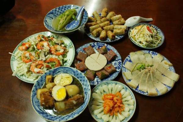 | ស្ពកសែនដូនតាជានិច្ចកាលពោពេញទៅដោយ បណ្ដាមុខ ម្ហូបដូចជា៖ សាច់ជ្រូកខ ស្ពៃជ្រក់ ត្រីចៀន បន្លែឆានិងសម្លម្រះ។ (Image: baotintuc.vn) |