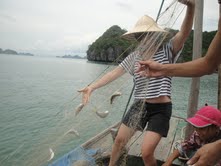ត្រូវបានជិះទូកនិងនេសាទត្រីដូចអ្នកនេសាទជំនាញ១នាក់។បង Tran Minh Ha ជាភ្ញៀវទេសចរ១រូបដែលចូលរួមទួរទេសចរណ៍នេះសំណេះសំណាលដោយក្តីរីករាយ