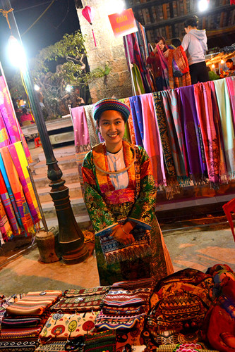 | នារីជនជាតិ Mong ដ៏ស្រស់ស្អាតម្នាក់កំពុងលក់ឥវ៉ាន់អនុស្សវិរីយ៍ |