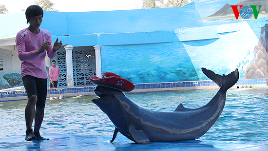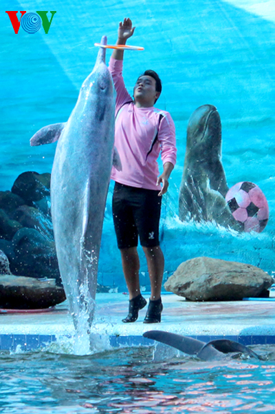 អ្នកដឹកនាំកម្មវិធីនាទីសម្តែងសត្វផ្សោតនៅទីនេះ លោកស្រី Pisamai Yuenyong បានឲ្យ