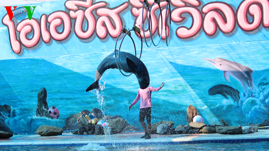 ទស្សនាសត្វផ្សោតសម្តែងនៅ ឧទ្យានទឹក Oasis Sea World ថៃ