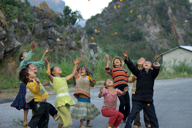 កុមារៗនៅឃុំ Sủng Là លេងល្បែងបោះផ្កា