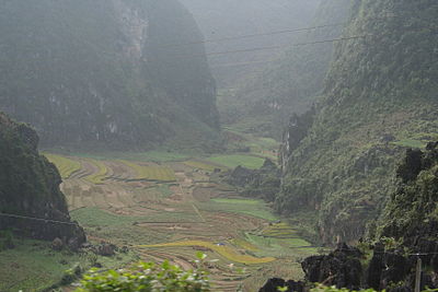 ថ្នាលស្រែកាំជណ្តើរនិងភ្នំថ្មនៅតំបន់ខ្ពង់រាបថ្ម Dong Van