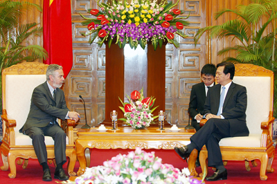 | នាយករដ្ឋមន្ត្រី Nguyen Tan Dung ទទួលជួបជាមួយរដ្ឋមន្រ្តីការ បរទេស Braxil Antonio de Aguiar Patriota (រូបថតៈ Internet) |
