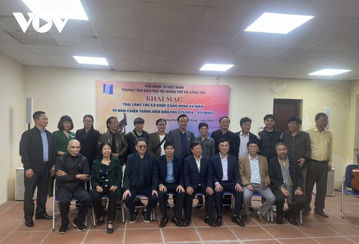 (VOVWORLD) - នាថ្ងៃទី ២២ ខែ មីនា នៅទីក្រុង Ha Long ខេត្ត Quang Ninh សមាគមតន្ត្រីករវៀត ណាមបានបើកជំរុំនិពន្ធ បទ ចម្រៀងអបអរសាទរខួបលើកទី ៧០ នៃជ័យជំនះ Dien Bien Phu (៧ ឧសភា ១៩៥៤ - ៧ ឧសភា ២០២៤)។