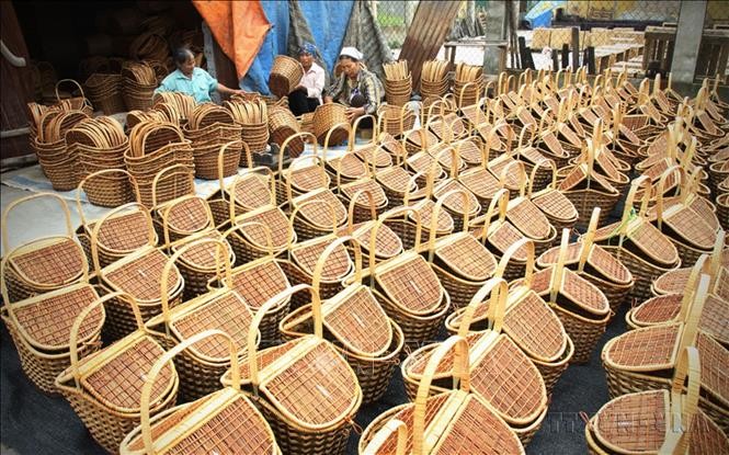 | ការផលិតទំនិញតម្បាញឫស្សីនិងផ្តៅសម្រាប់នាំចេញនៅក្រុមហ៊ុនតម្បាញឬស្សី-ផ្ដៅនាំចេញ Hien Luong (ឃុំ Phu Tuc ស្រុក Phu Xuyen ទីក្រុងហាណូយ) ដើម្បីនាំចេញទៅកាន់ទីផ្សារជប៉ុន សហរដ្ឋអាមេរិក សហភាពអឺរ៉ុប (EU) ... រូបថត៖ VNA |
