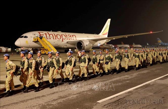 | ក្រុមកងវិស្វកម្មលេខ ១ មកដល់អាកាសយានដ្ឋានអន្តរជាតិ Noi Bai (ហាណូយ) បន្ទាប់ពីបញ្ចប់ប្រតិបត្តិការរក្សាសន្តិភាពនៅបេសកកម្ម UNISFA (តំបន់ Abyei)។ រូបថត៖ VNA |