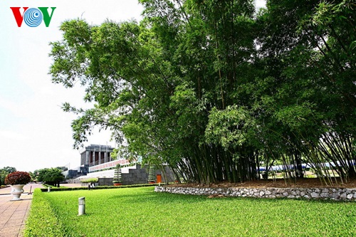 គុំជូរដើមឬស្សីនៅក្បែប្រាងតម្កល់សពលោកប្រធានហូជីមិញ។