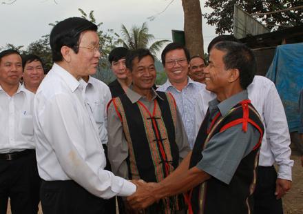 | ប្រធានរដ្ឋTruong Tan Sang ទៅសាកសួរសុខទុកប្រជាជនឃុំ Mo Ray ស្រុក Sa Thay(Kon Tum) (រូបថតៈInternet) |