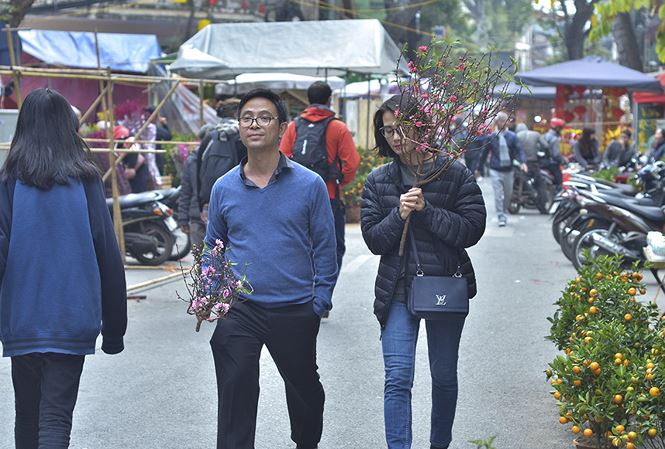 នាប៉ុន្មានថ្ងៃដែលជិតដល់បុណ្យតេត បណ្ដាវិថីនៅទីក្រុងហាណូយត្រូវបានតុបតែងស្អាតលំអអស្ចារ្យនិងមានមនុស្សម្នាជាច្រើនកុះករ។ សម្របចូលក្នុងបិរយាកាសនោះ នណាក៏សប្បាយរីករាយត្រៀមរៀបចំទទួលបុណ្យចូលឆ្នាំថ្មីប្រពៃណី។ បណ្ដាទីផ្សារផ្កាក៏អ៊ូអរសប្បាយ គ្រប់ដណ្តបនៅដោយចម្រុះពណ៌របស់ផ្ការគ្រប់ប្រភេទរីកស្មុះស្គាយ។ ផើងដើមក្រូចខ្វិច មែកម៉ាកខៃ កន្រ្តក់ផ្ការាប់រយប្រភេទត្រូវបានដាក់លក់។ តាមបណ្តោយវិថី Hang Ma ជាពណ៌ក្រហមនៃរឿងតុបតែងក្នុងបុណ្យតេតដូចជាចង្កៀងគោមនិងក្តាលើករាសី។ លោកស្រី Nguyen Thi Hao នៅខ័ណ្ឌ Hoan Kiem ទីក្រុងហាណូយ បានឲ្យដឹងថា៖ «ខ្ញុំទៅទិញគ្រឿងងៀតសំរាប់គ្រួសារ។ ខ្ញុំចូលចិត្តផ្លែឈើឆ្អើរ កាហ្វេ តែ និងស្ករគ្រាប់។ ខ្ញុំក៏ទិញគ្រឿងសំណែនដើម្បីទៅវត្តដើមឆ្នាំដែរ។ ខ្ញុំមានគោល បំណងថា៖ នាឆ្នាំថ្មី គ្រួសារខ្ញុំមានសុខភាពល្អ សម្បូស្បាយ បណ្ដាកូនរៀន សូត្រពូកែរ។ ឆ្នាំនេះ អាកាសធាតុល្អណាស់ ដូច្នេះ ទៅទិញសំរាប់បុណ្យតេត ក៏ស្រួលចិត្តណាស់។»