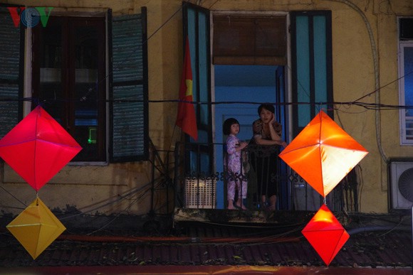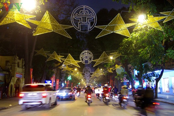 | វិថី Hang Bai ត្រូវបានតុបតែងដោយផ្កាយផ្លេកៗ។ |